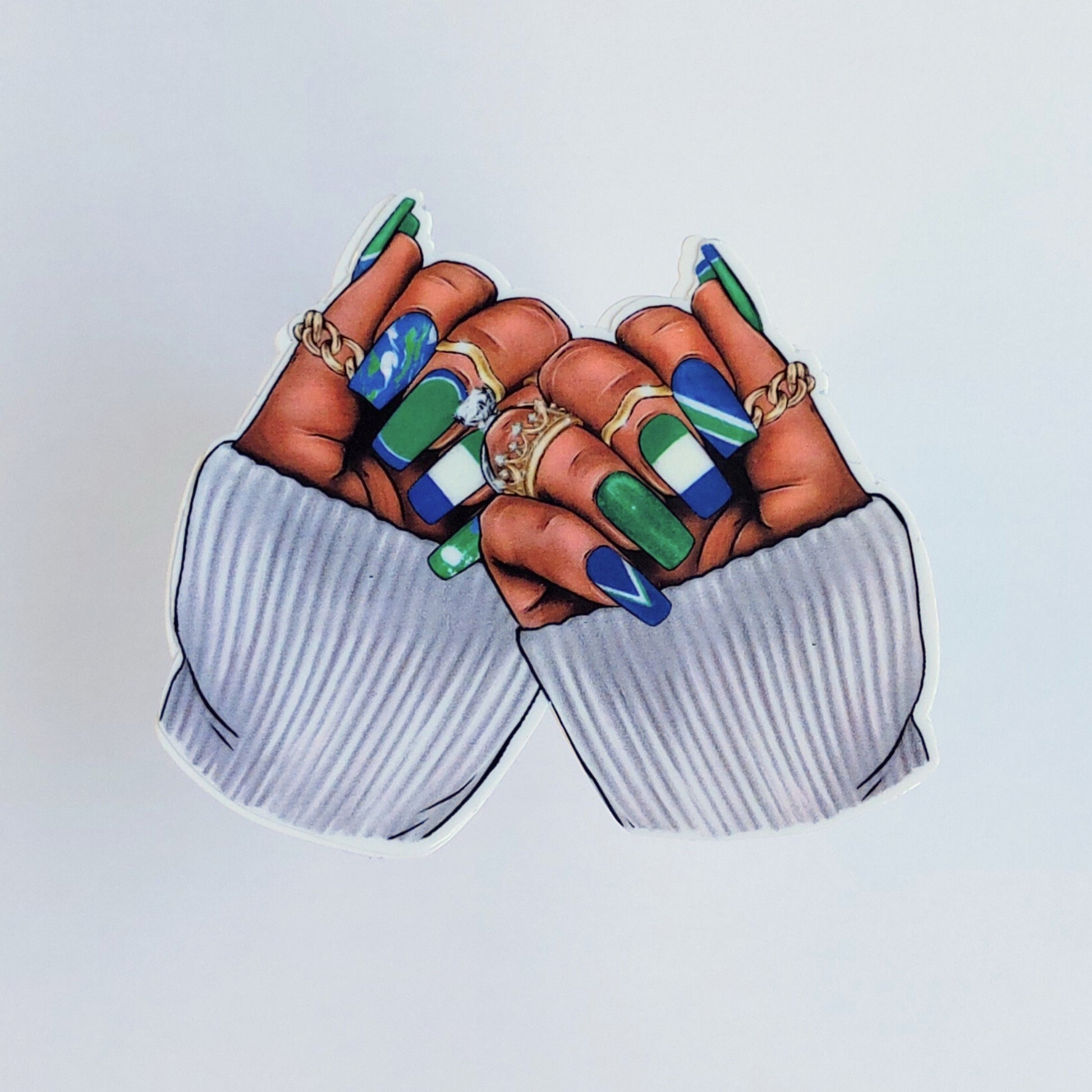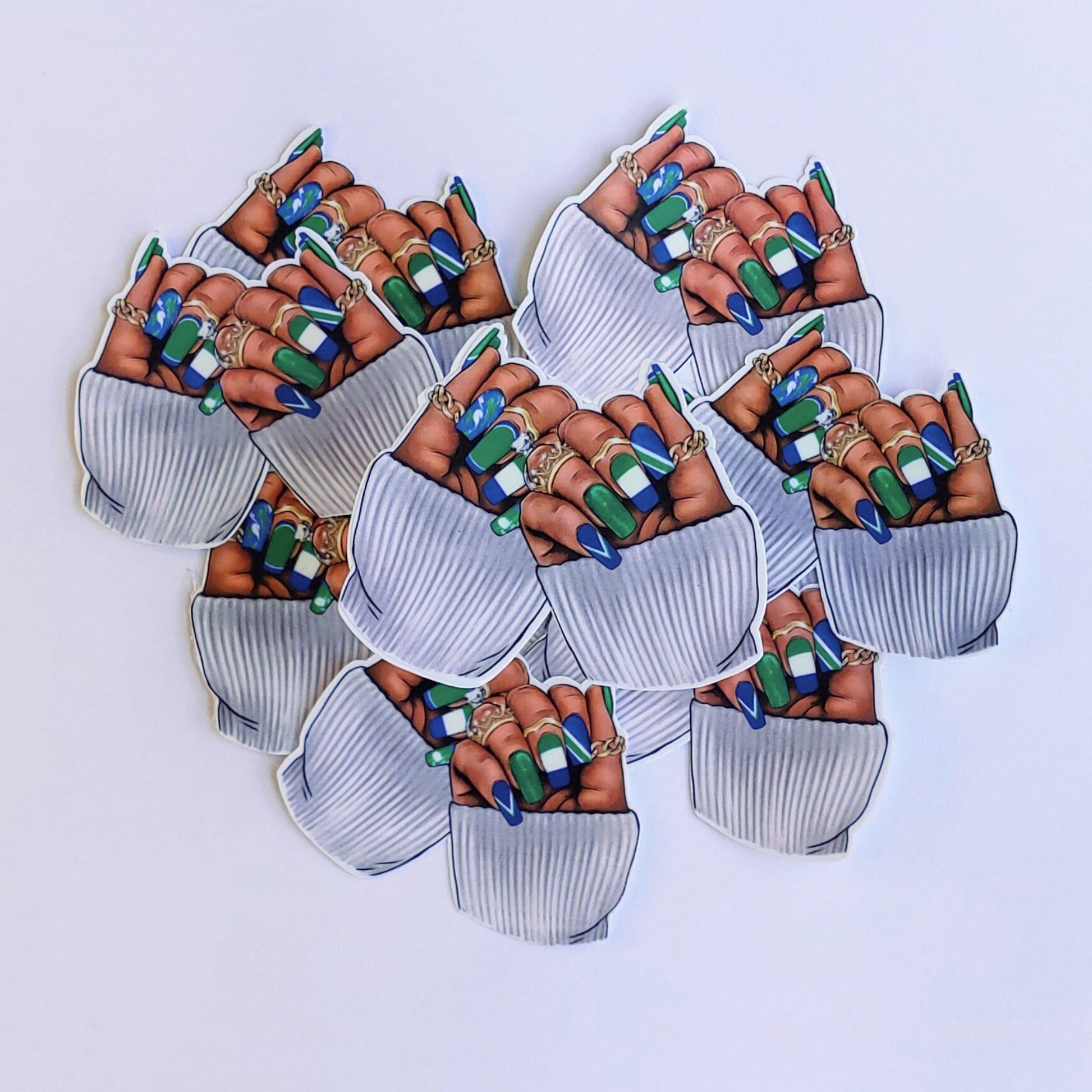 This eye-catching vinyl sticker celebrates Sierra Leone's heritage with its distinctive nails design adorned in the meaningful Green, white and Blue colours of the Sierra Leone flag.